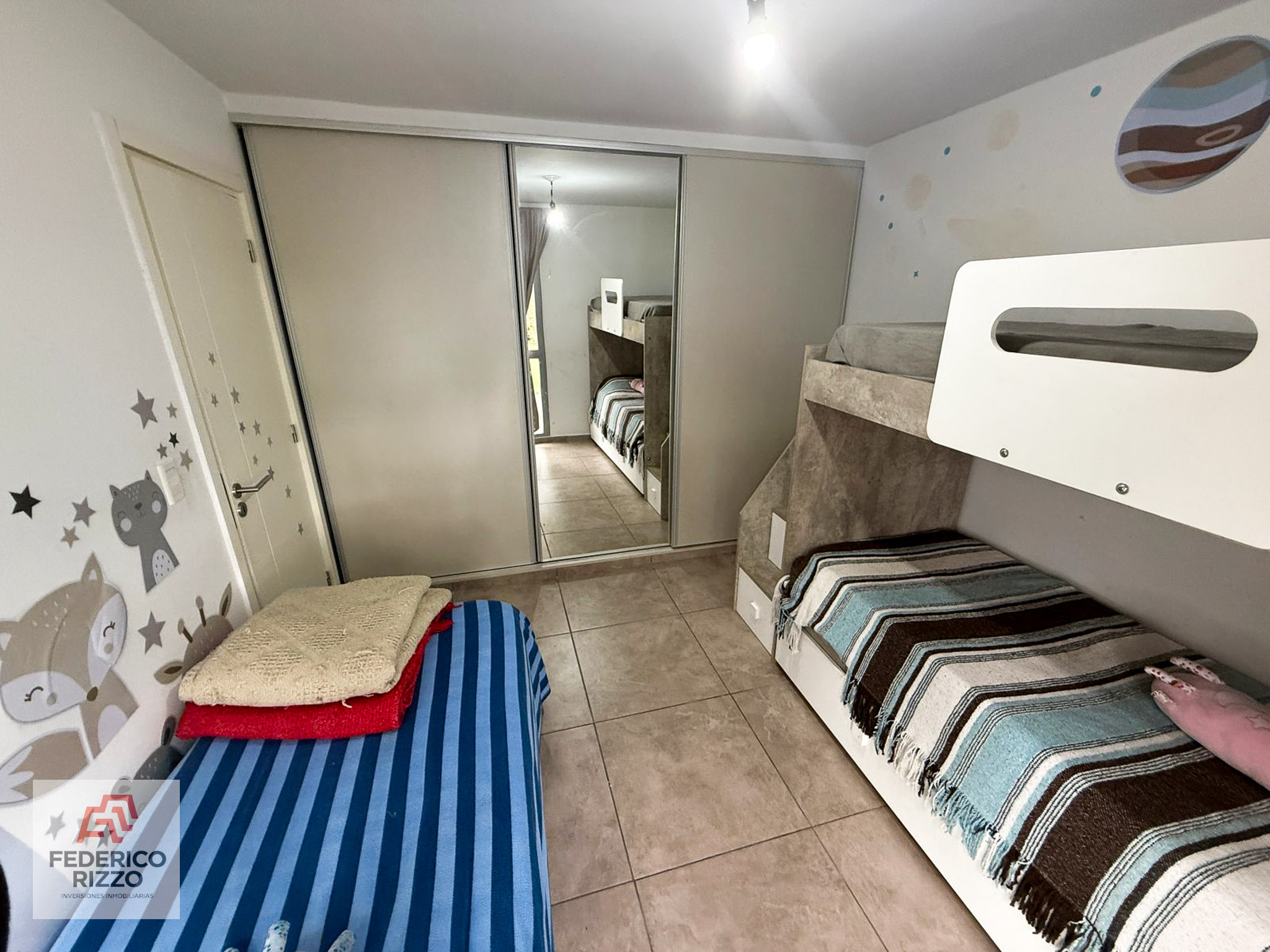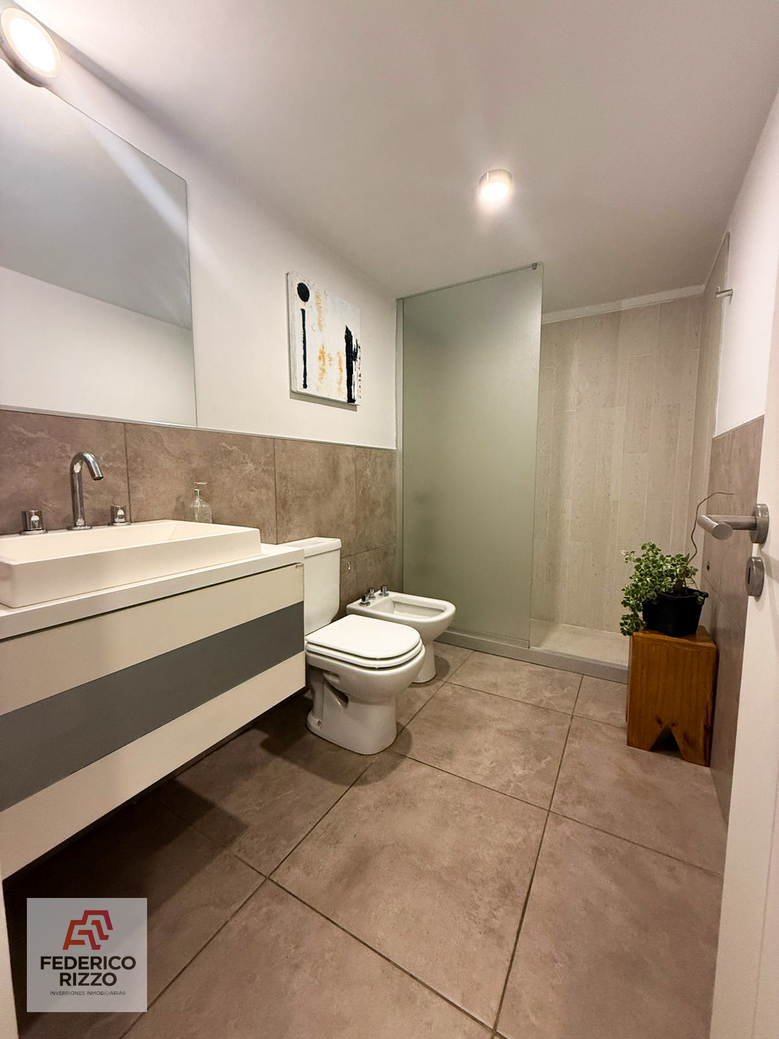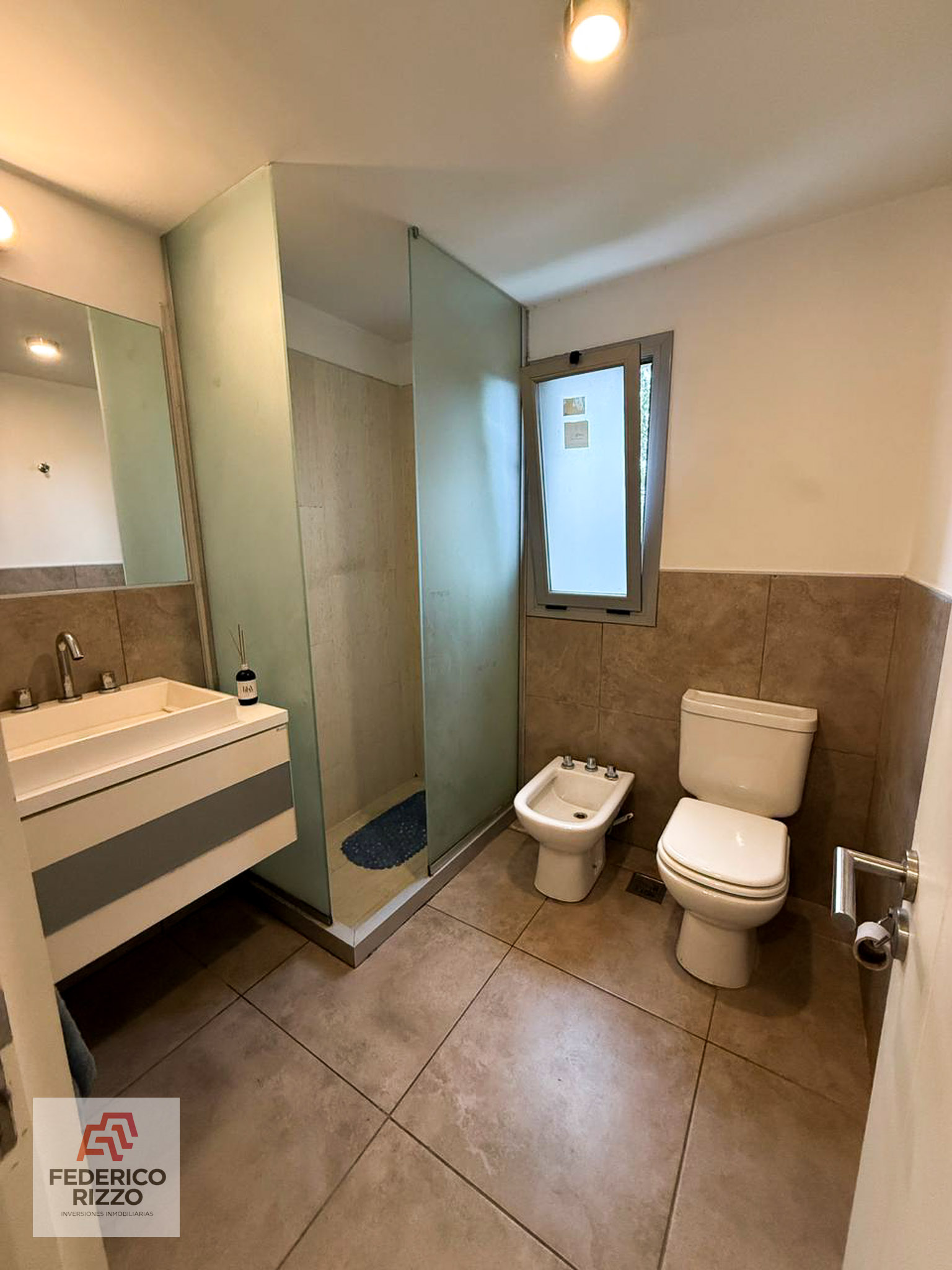 El alquiler de departamento en Manantiales cuenta con dos amplios dormitorios, ambos con placard empotrado, que brindan mucho espacio y orden. Los placares están equipados con cajones y divisiones. Tiene dos baños, uno en suite. El living-comedor es amplio, brindando una gran comodidad para toda la familia o para recibir visitas. La cocina separada está completamente equipada con mueble bajo mesada, alacena, cocina y calefón.